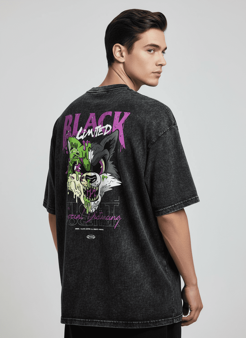 Wildloom Acid Wash Black Oversized Alpha Wolf T-shirt