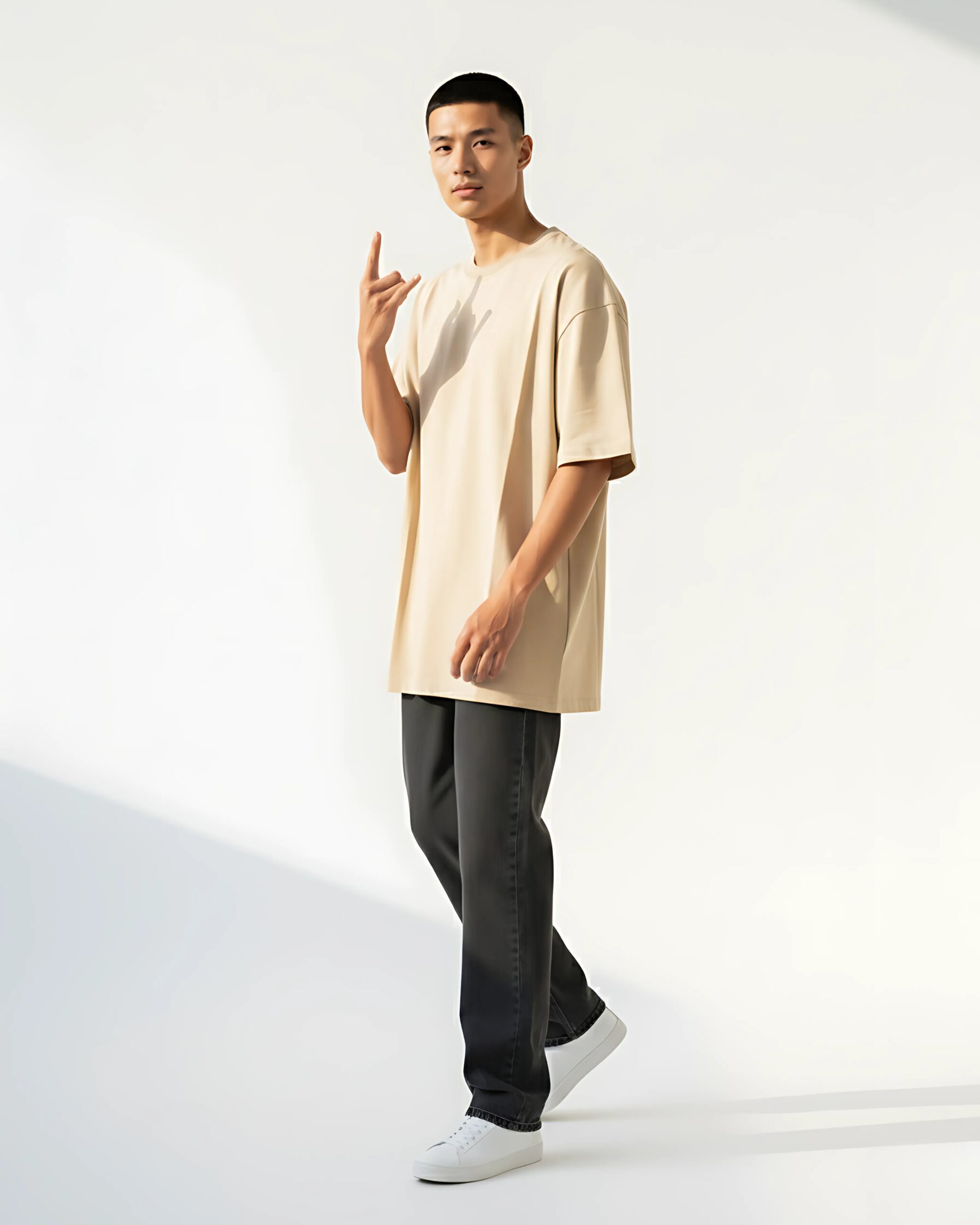 Heavyweight fabric (~240 GSM) that holds shape but drapes nicely